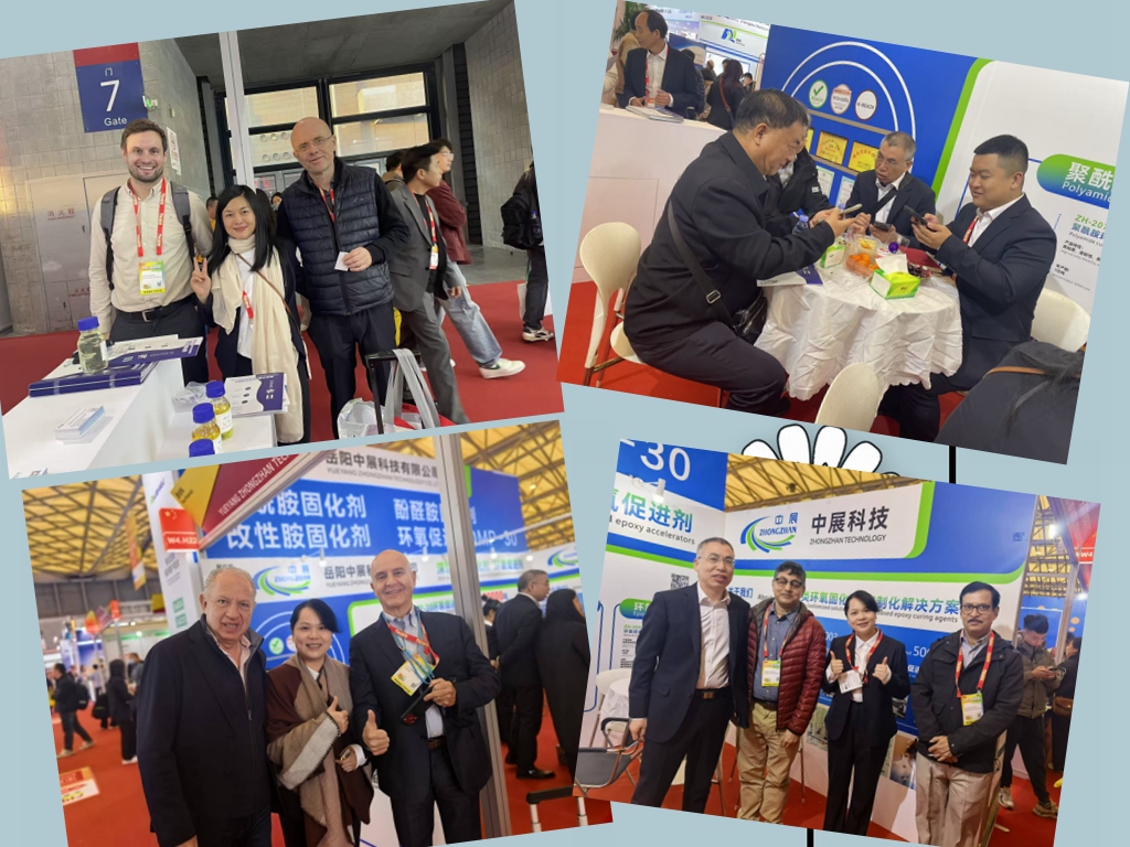 在這場行業盛會上,岳陽中展科技的展位始終保持著超高人氣,成為眾多國內外客商關注的焦點。本次參展,中展科技攜核心產品矩陣精彩亮相,涵蓋環氧促進劑、聚酰胺固化劑、酚醛胺固化劑、改性胺固化劑等多款高性能產品,全面展現了企業在涂料助劑領域的研發實力與產品競爭力。其中,公司自主研發生產的環氧促進劑DMP-30憑借其純度高、性能穩定、適配性強等突出優勢,成為展位的“明星產品”,不僅贏得了國內涂料及膠粘劑企業的高度認可,更吸引了大量海外客商駐足咨詢。來自韓國、日本、阿聯酋、巴基斯坦、印度、伊朗、俄羅斯、巴西、墨西哥等幾十個國家的外國友商紛紛來到展位,與中展科技的業務團隊深入交流產品特性、應用場景及合作模式,現場達成多項初步合作意向,洽談氛圍十分火爆。